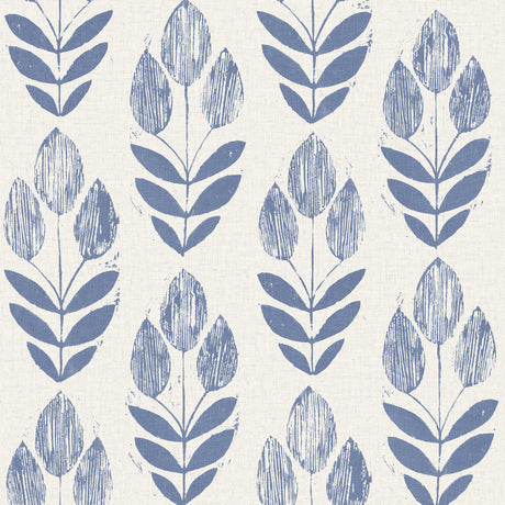 Beacon House 2535-20652 Scandinavian Blue Block Print Tulip Wallpaper