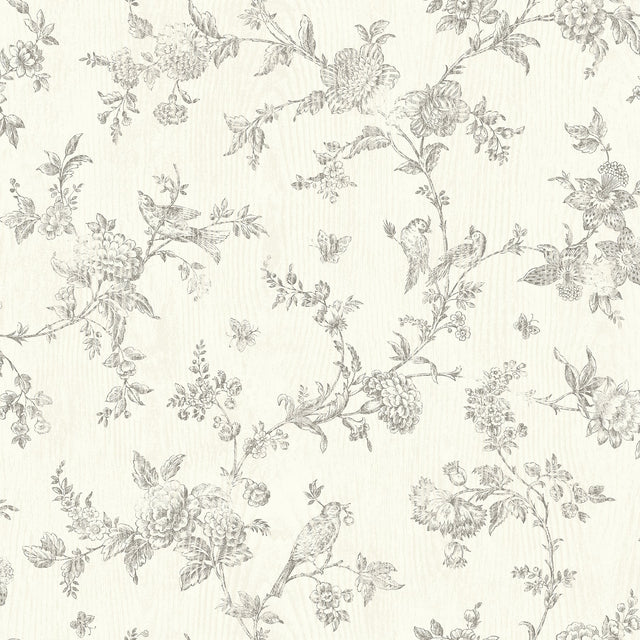 Chesapeake 3119-02193 French Nightingale Taupe Floral Scroll Wallpaper