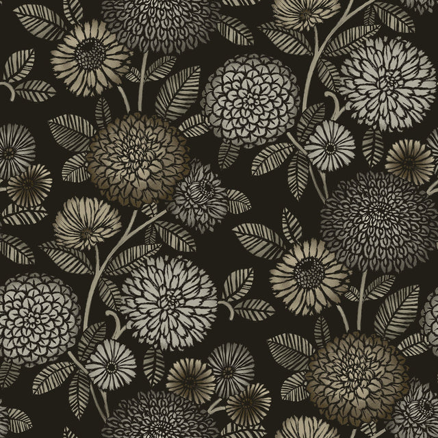 Chesapeake 3125-72327 Zalipie Black Floral Trail Wallpaper - Bolt is backordered and will ship as soon as it is back in stock.