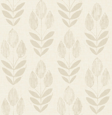 NuWallpaper NUS4302 Cream Folk Tulip Peel & Stick Wallpaper