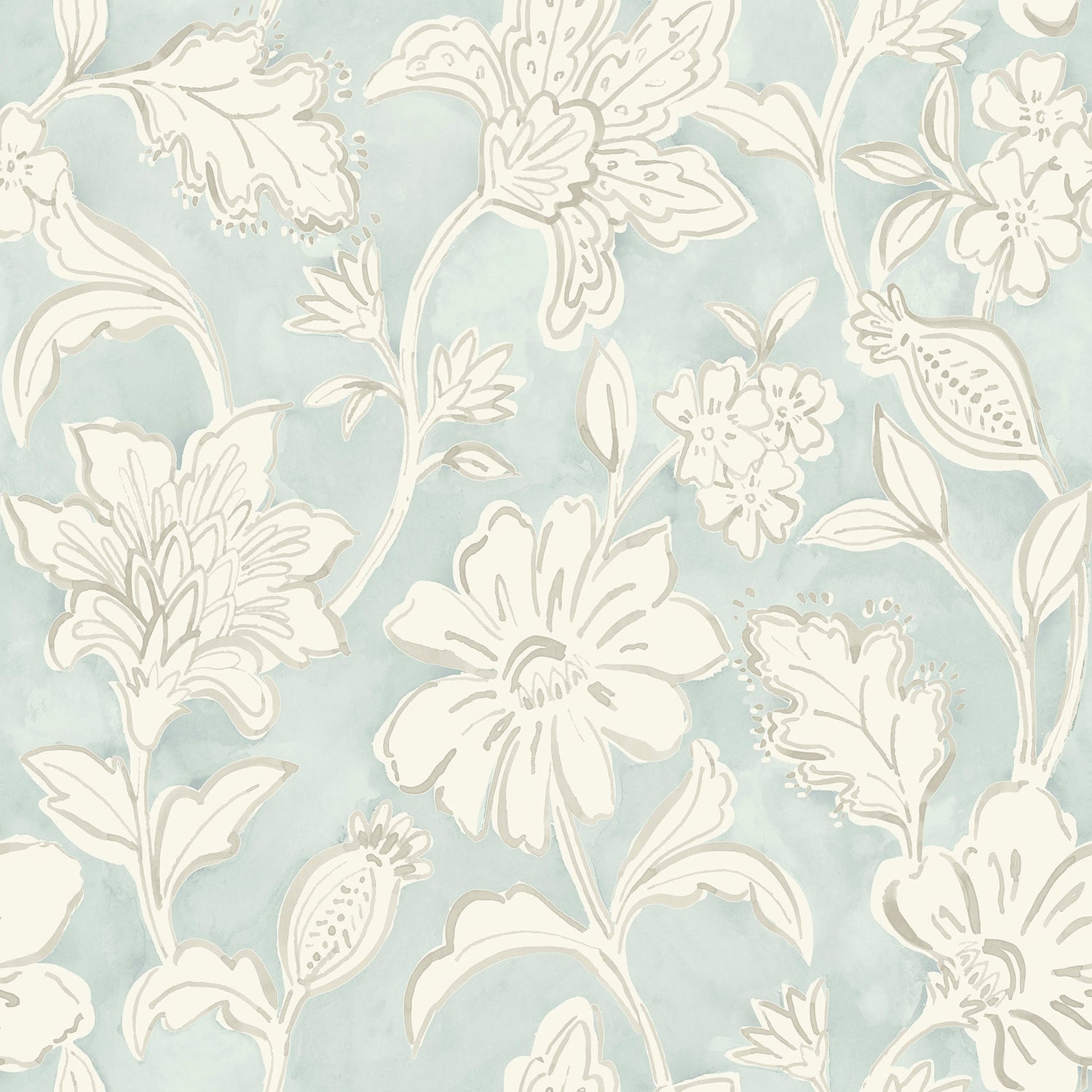 Chesapeake 4071-71038 Plumeria Aqua Floral Trail Wallpaper